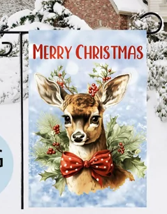 Christmas Garden Flag Reindeer, Tree, Snowman, Cow Without Stand